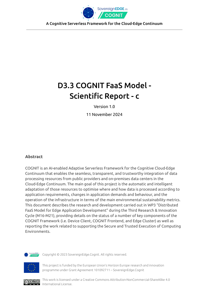 WP3 – Distributed FaaS Model for Edge Application Development