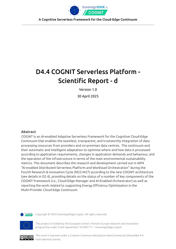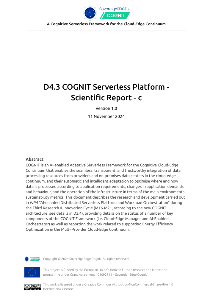 WP5 – Adaptive Serverless Framework Integration and Validation